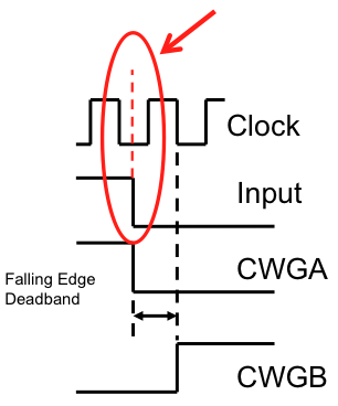 When the rising and falling edges of the input source trigger the dead-band counters, the input may be asynchronous to the clock input. This will create some uncertainty in the dead-band time delay. The maximum uncertainty is equal to one CWG clock period.