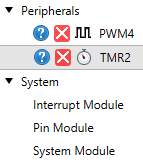 Next, Timer2 needs to be set up. Click on TMR2 under Project Resources to make the Timer2 setup appear.